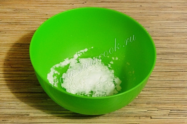 2. Отделить белки от желтков. Желтки нам не понадобятся. Соединить белки с солью и разрыхлителем. Дать немного постоять, чтобы произошла реакция. Взбить в легкую пену.