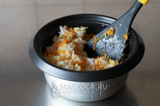 Сразу после того, как рис сварился, смешиваем его с жареными овощами, солим, перчим и оставляем остывать (а заодно - набираться вкуса).