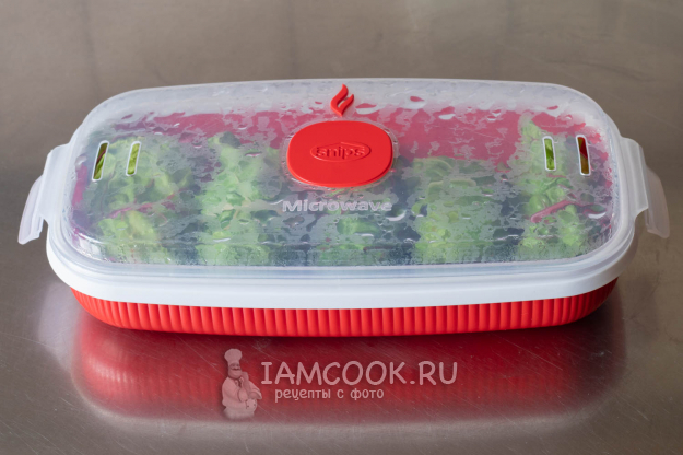 Закрываем крышкой и готовим на мощности 800 Вт 5-6 минут.