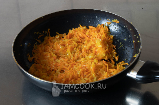 Обжариваем лук и морковь в небольшом количестве масла при периодическом помешивании до желательной вам степени готовности.