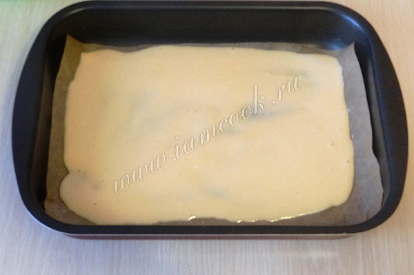5. Тонким слоем разровнять тесто на бумаге для выпечки.
