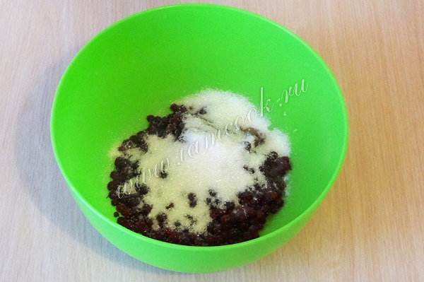 8. Для начинки перетереть бруснику с сахаром.