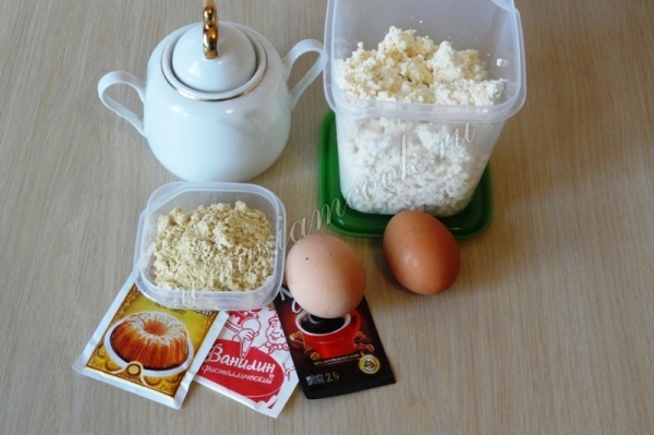 9. Для крема смешайте творог, сахар, ванилин и молоко. Количество молока в большей степени будет зависеть от творога, его может уйти чуть больше или меньше. Крем должен получится не слишком густой.