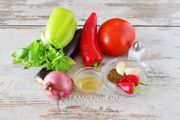 Подготовим все продукты для приготовления грузинского аджапсандала в духовке.