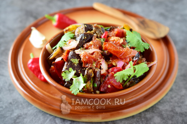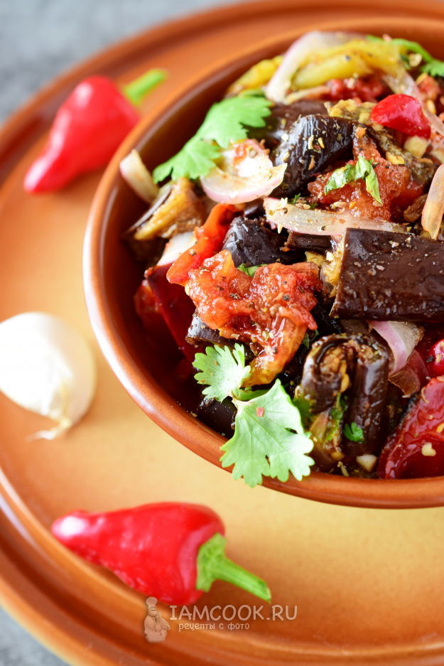 Запеченный в духовке грузинский аджапсандал готов! Подаем как холодную закуску к мясу с хлебными лепешками.