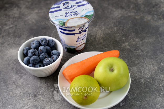 Подготовьте необходимые продукты. Морковь почистите, помойте вместе с яблоком и голубикой под проточной водой, обсушите.