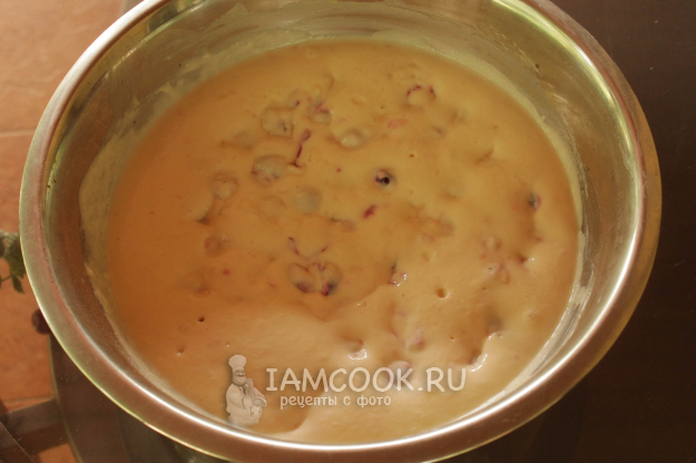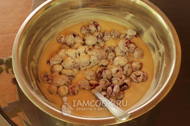 Загрузите присыпанные мукой вишни в тесто, аккуратно перемешайте.