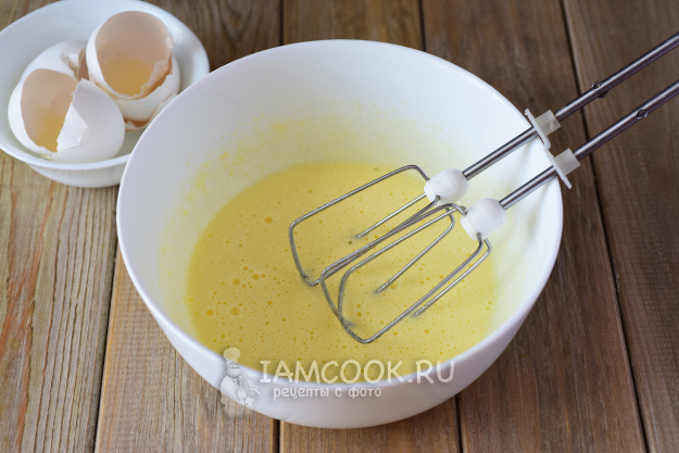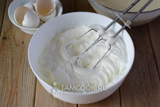 Взбивать миксером примерно одну минуту до пышной светлой пены.