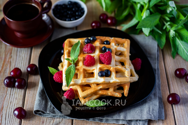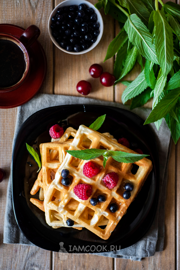 Классические Бельгийские вафли готовы. Подавайте их со свежими ягодами, полив сиропом, медом или растопленным шоколадом.