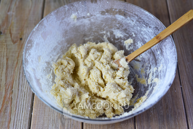 Замесить тесто ложкой. Слишком долго тесто замешивать не нужно: как только все ингредиенты соединились - тесто готово. Включить духовку разогреваться до 180 градусов.