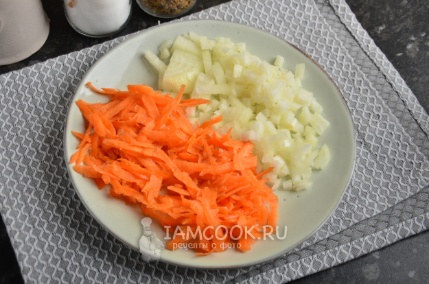 Морковь и лук почистите, затем измельчите (с помощью ножа и терки).