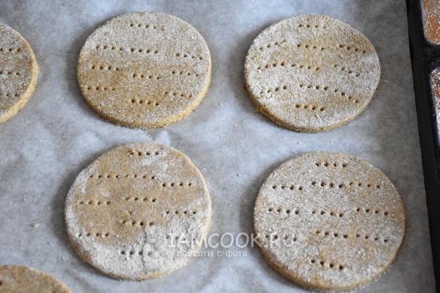 Выложить лепешки на противень с пергаментом и наколоть вилкой. Выпекать в разогретой до 220°С духовке 15 минут.