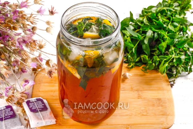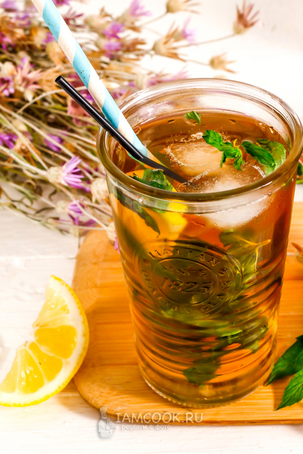 Разлейте холодный чай с лимоном и мятой в стаканы, коктейльные банки и оснастите трубочками, соломинками. Подайте к столу сразу же после создания.