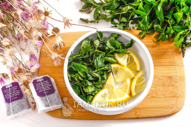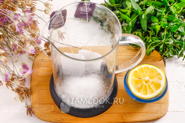 Подготовьте необходимые ингредиенты для холодного чая с лимоном и мятой и начнем кулинарить! Сорт чая особого значения не имеет, равно как и то, в чем он будет использоваться: сыпучая заварка или пакетики. Я все же рекомендую заварить пакетированный чай - вам не нужно будет процеживать напиток от заварки.