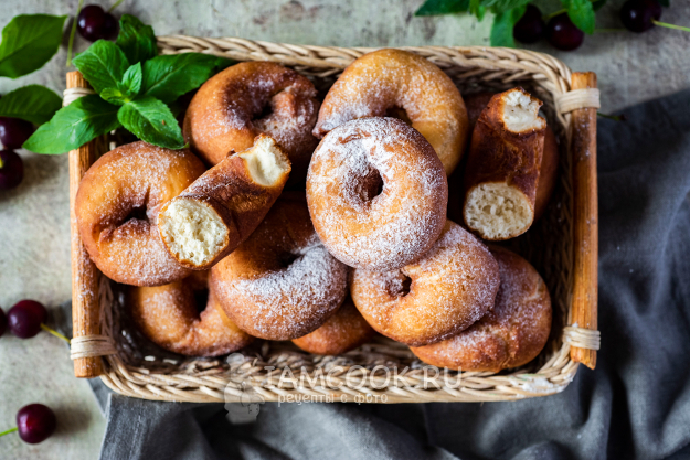 Готовые калачики выловить шумовкой и переложить на бумажное полотенце. Удалив излишки масла, подать жареные калачики на сгущенке к столу, чуть присыпав сахарной пудрой при желании.