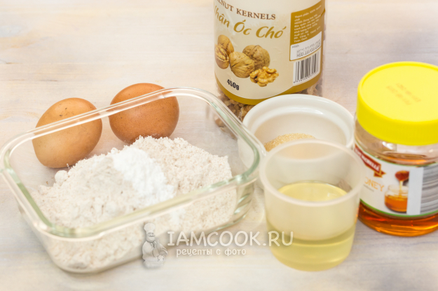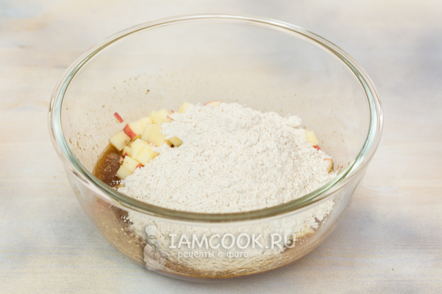 Для приготовления кексов из цельнозерновой муки с яблоками и орехами подготовьте продукты по списку.