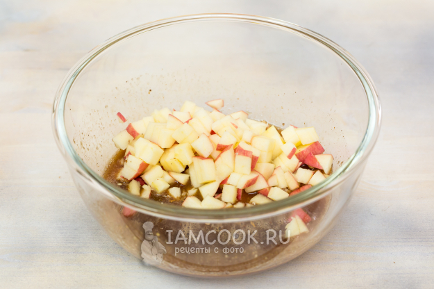 Добавьте измельченные (не в пыль) орехи и нарезанное яблоко.