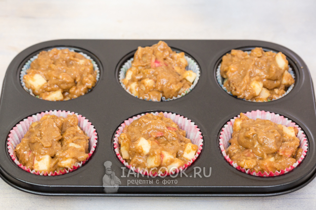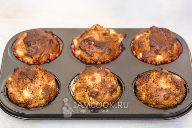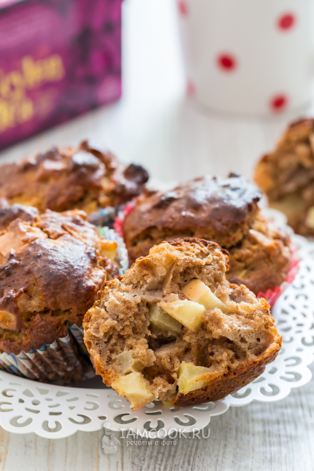 Кексы из цельнозерновой муки с яблоками и орехами готовы.