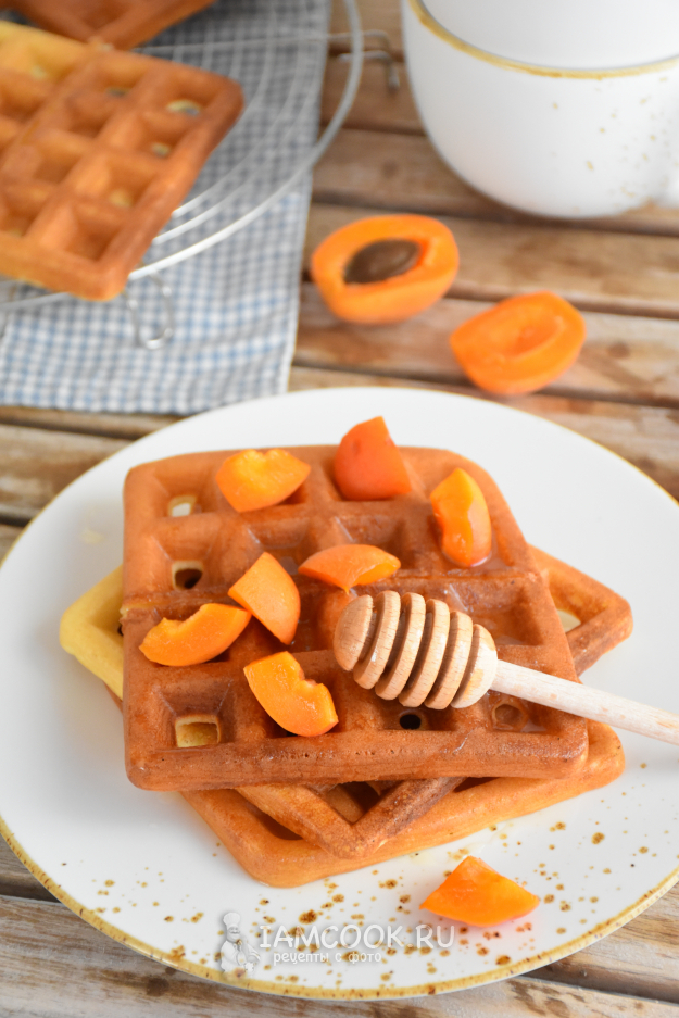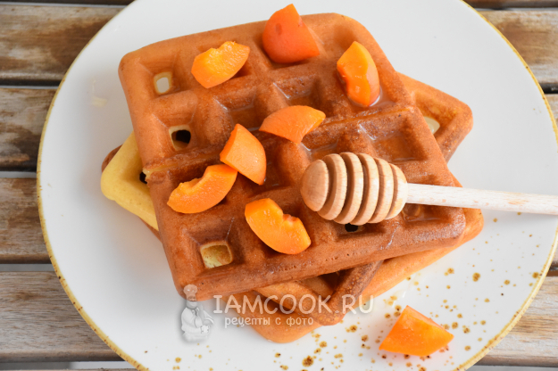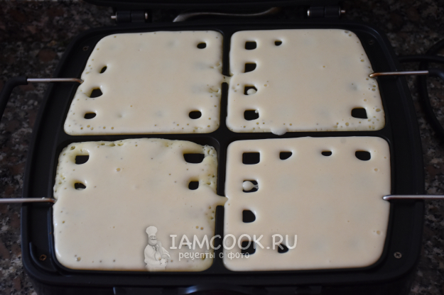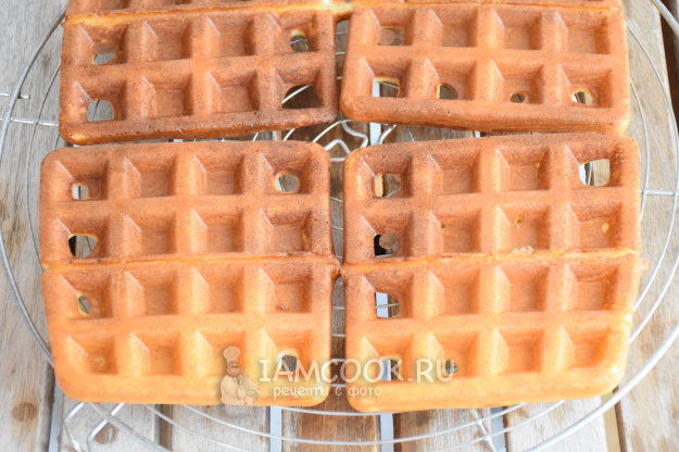 Выпекать вафли в вафельнице согласно инструкции до готовности. Я выпекаю 5 минут каждую партию вафель.