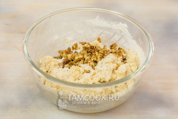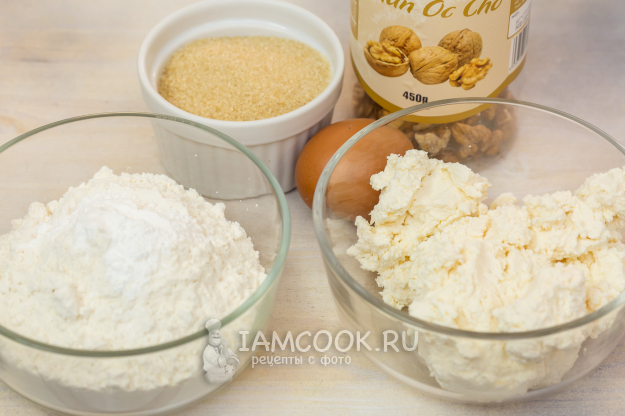 Для приготовления творожного печенья с орехами подготовьте продукты по списку.
