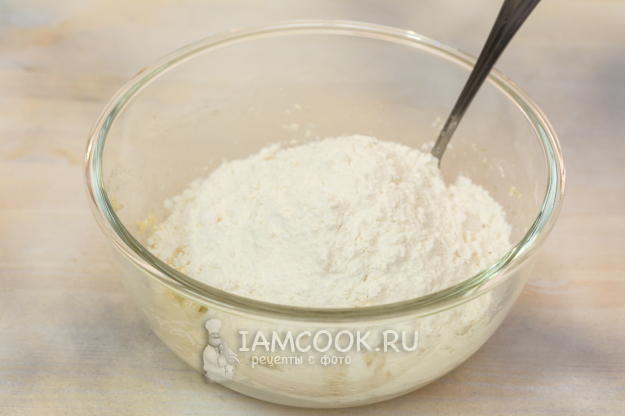 Смешайте творог, яйцо, ванилин, сахар и соль.