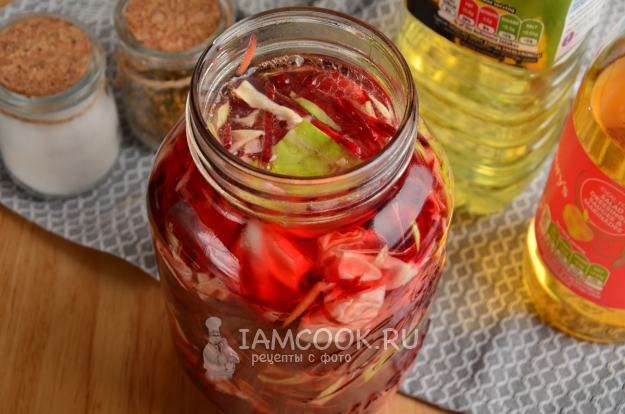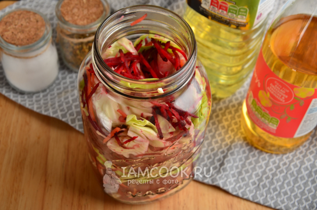 На зиму капусту со свеклой по-корейски поместите в тёмное прохладное место. До подходящего момента...