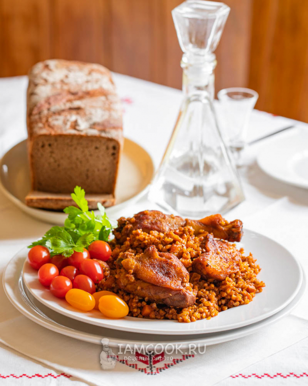 Кто когда-нибудь пробовал утку, фаршированную гречневой кашей, тот знает, насколько хорошо подходят эти два продукта друг к другу. Гречка по-купечески готовится, на мой взгляд, куда проще, чем фаршированная утка, а вот по вкусу она, может быть, даже и побогаче. Можно использовать любые части утки. Исходя из моего опыта, одну утиную ножку реально разделить на три кусочка, которых как раз хватает, чтобы обогатить вкус гречи. Если у вас утятины больше - это только приветствуется, но у меня показан абсолютный минимум, когда она выступает как приправа, и каждому едоку достаётся как раз по небольшому кусочку мяса.