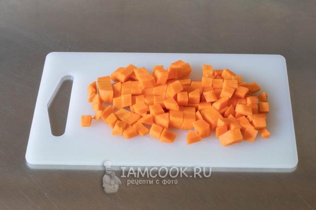 Лук режем соразмерно моркови. Добавляем овощи после покоричневения утятины и жарим всё вместе.
