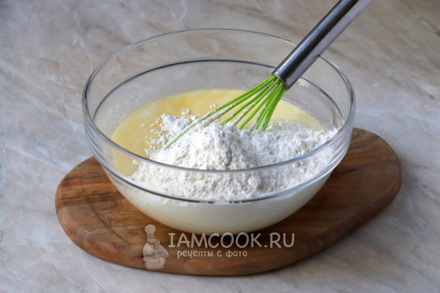 Введите просеянную пшеничную муку и замесите мягкое, не липнущее к рукам тесто.