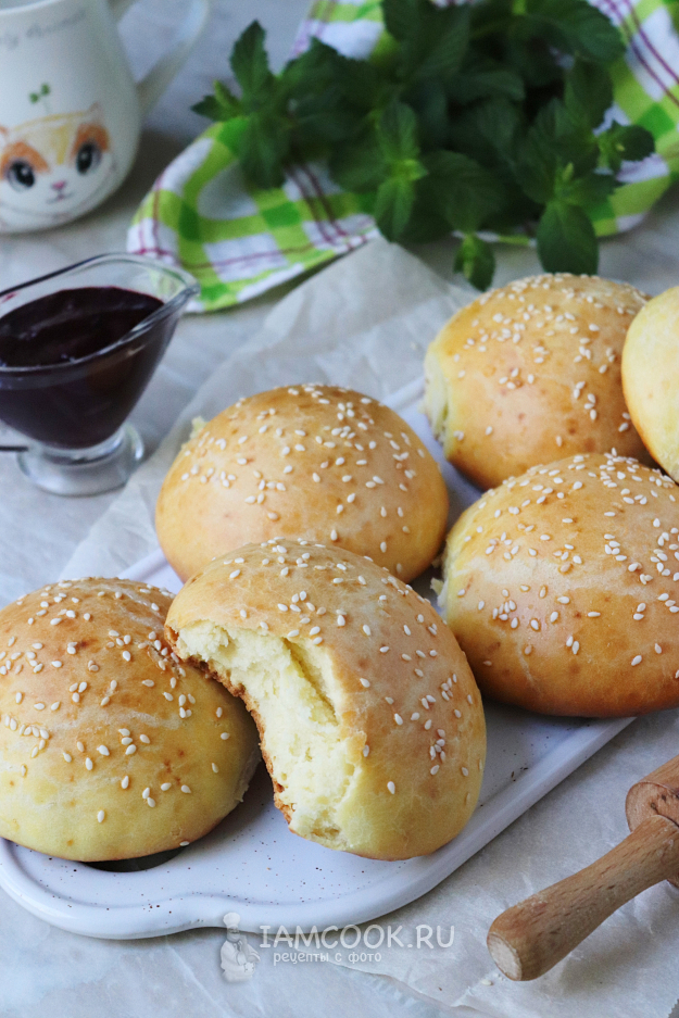 Булочки, замешанные на простокваше без дрожжей, получаются не только вкусными, но и очень аппетитными.