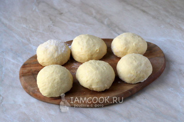 Разделите его на 6 равных частей (для точности можно воспользоваться кухонными весами). Из каждой части сформируйте круглую заготовку.