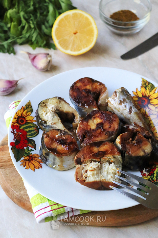Переложить скумбрию на плоское блюдо. Подавать её лучше в горячем виде. Очень вкусно с картофельным пюре и свежими овощами.