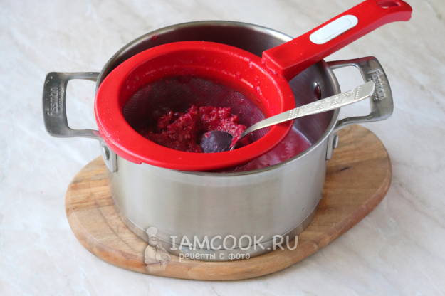 Получившуюся кашицу перетереть через мелкое сито, чтобы избавиться от косточек.