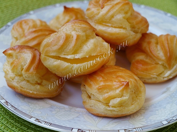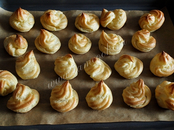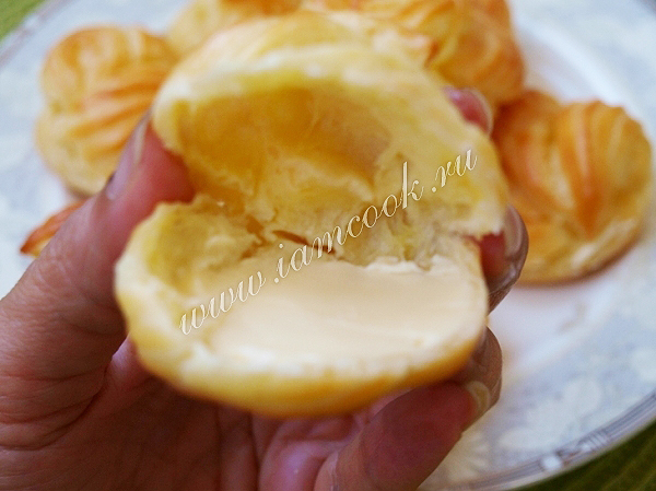 Готовые профитроли надрезаем сбоку чтоб получилась ракушка.