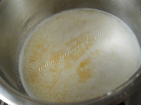В кастрюле смешиваем молоко, воду и сливочное масло, нагреваем, даём закипеть и кипятим на медленном огне 5 минут.