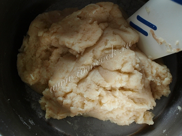 Просеиваем сразу всю муку в миску,чтоб потом высыпать её быстро в кастрюлю и сразу размешать. Газ следует выключить и лопаткой хорошо вымешивать тесто пока оно отстанет от стенок кастрюли.