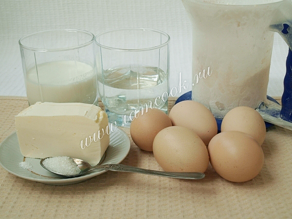 Для приготовления профитролей нам понадобится молоко, вода, мука, сливочное масло, сахар и яйца. Для начинки 1 банка красной икры, сливочное масло и укроп.