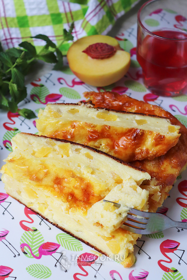 Выпекайте запеканку с персиками и творогом в духовке (предварительно разогретой до 180 градусов) в течение 40-45 минут, до красивого золотистого цвета. Ориентируйтесь по своей духовке.