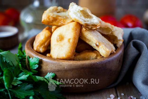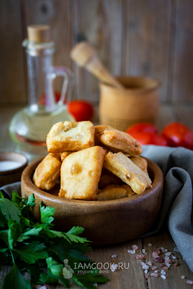 Аппетитные, золотистые баурсаки с луком выловить шумовкой и выложить на тарелку. Подавать горячими.