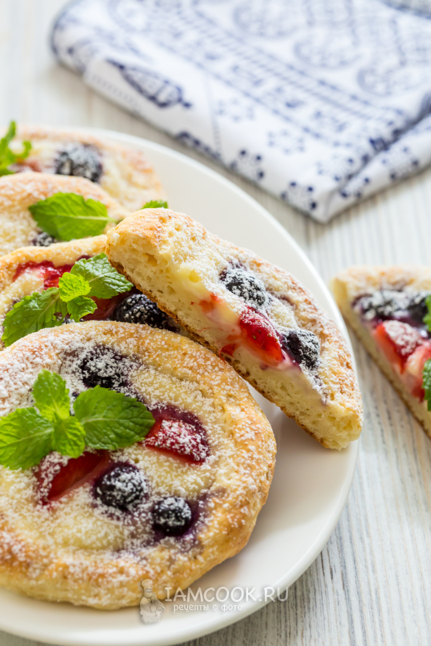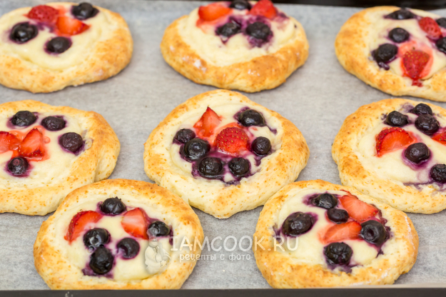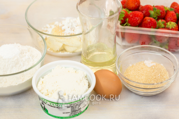 Для приготовления ватрушек из творожного теста с ягодами подготовьте продукты по списку.