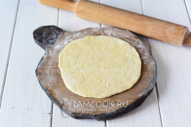 Припылить мукой рабочую поверхность. Каждый кусочек теста раскатать в тонкий (толщиной 2-3 мм) блинчик.