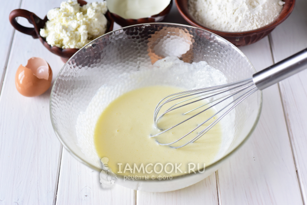 Венчиком активно перемешать ингредиенты до получения однородной смеси.
