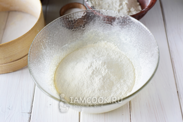 Просеять к сметанной смеси всю муку.