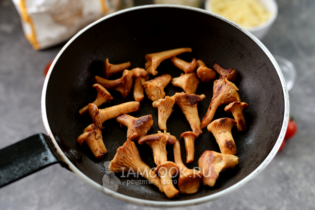 В это время обжарьте лисички в минимальном количестве растительного масла, переложите их на салфетку и остудите.
