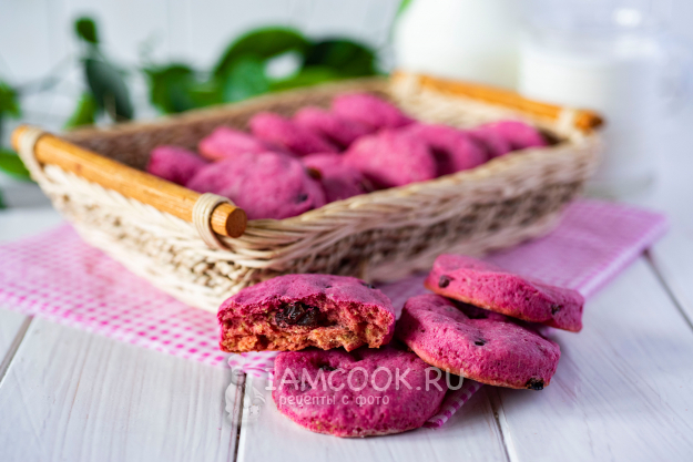 Подготовить ингредиенты для песочного печенья со свеклой (точнее со свекольным соком). Помыть свеклу и изюм. Масло выложить на стол за 30 минут до начала работы - оно понадобится в размягченном состоянии.
