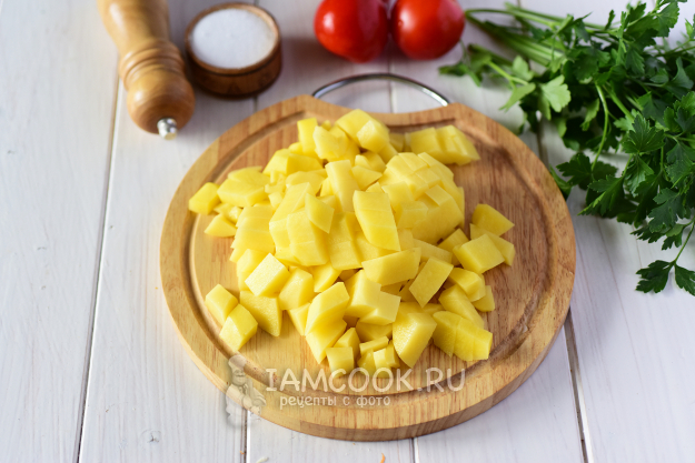 Картофель нарезать кубиками.