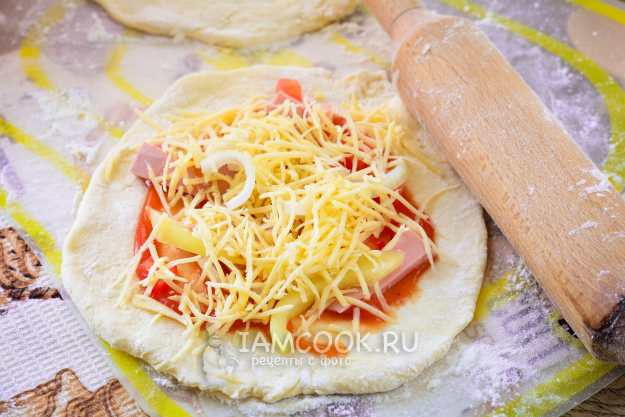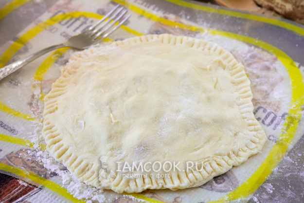 Закройте сверху второй лепешкой, защипните края и придавите вилочкой. Закрытая пицца готова. Таким образом слепите все пиццы. Осталось пожарить.
