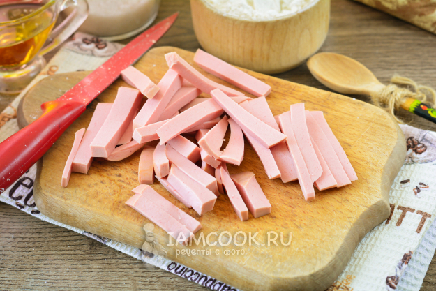 Подготовьте все ингредиенты для приготовления закрытой пиццы на сковороде. Тесто быстро замешивается на основе кефира, а за счет майонеза и соды пицца будет пышной и мягкой. Для начинки возьмите свои любимые продукты. У меня была вареная колбаса, сладкий перец, лук, сыр, помидоры для сочности и кетчуп.