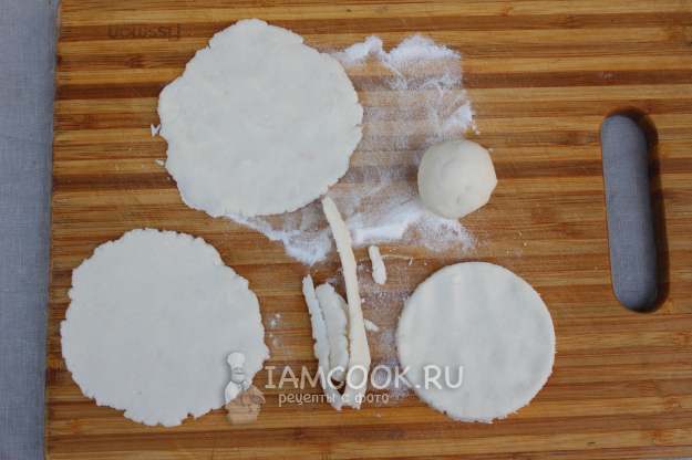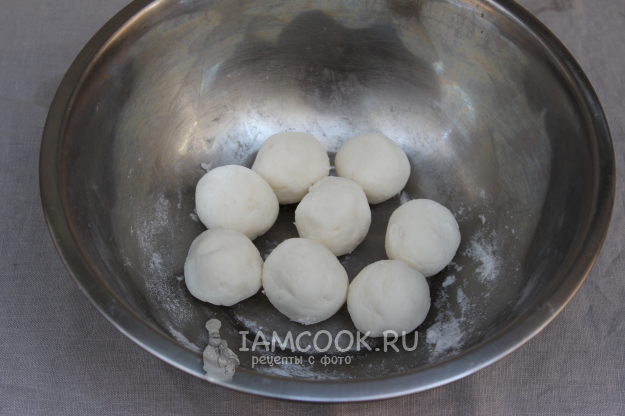 Тесто получается пластичным, мягким, упругим, его можно легко раскатать. У меня не было много места для раскатки, поэтому разделила тесто на небольшие равные кусочки.
