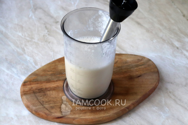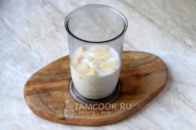В чашу блендера налейте молоко (лучше сразу использовать охлаждённое), добавьте подготовленную дыню и мёд по вкусу. Перебейте до однородности.